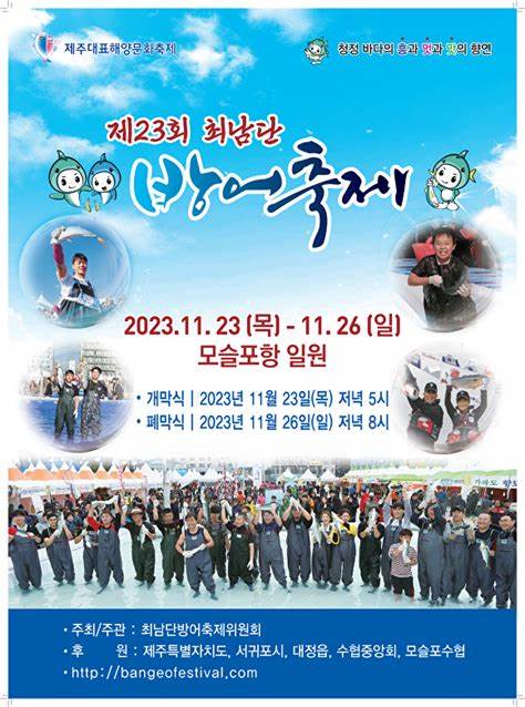 한편, 올해 방어축제는 23회째 열렸으며 매년 많은 관람객들이 찾는 제주 대표축제다. 다양한 방어요리를 맛 볼 수 있으며 방어낙시, 현장 방어경매, 손으로 방어 잡기 등 직접 참여할 수 있는 프로그램이 마련돼 있다.