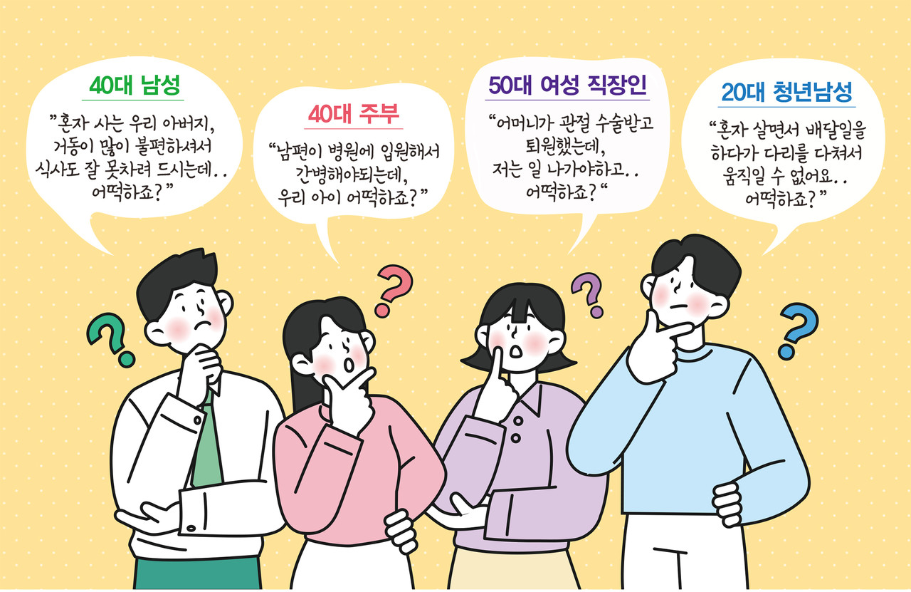 서비스가 필요한 경우 주소지 읍면동을 방문해서 신청하면 된다. 통합돌봄 상담 전화(1577-9110)로 서비스 상담도 가능하다.