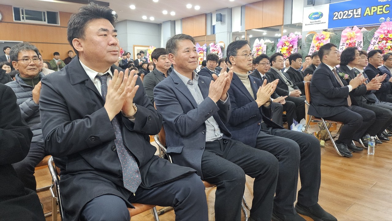 그리고 2024년 송산동연합청년회장 이·취임식 참석자 전원은 2025년 APEC 정상회의 유치 기념 결의 대회를 진행했다.