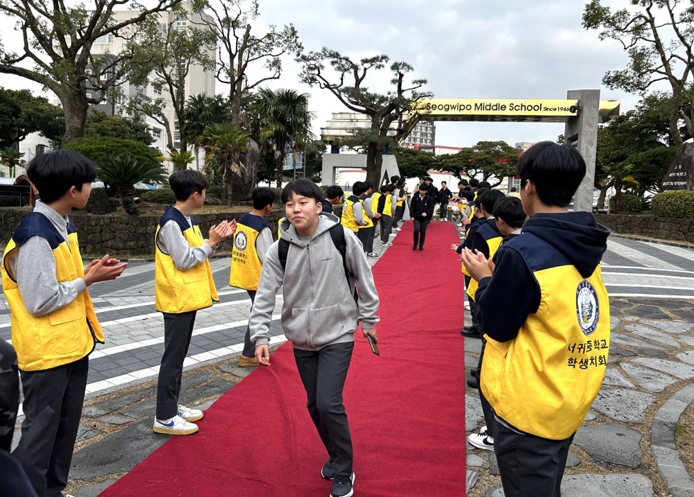 서귀포중학교(교장 고성무)는 지난 4일 아우름관에서 신입생 208명이 참여해 ‘오롯이 타오르는 서중인, 희망의 새 출발’을 주제로 2024학년도 입학식을 열었다.