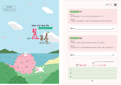 지난 2023 자료의 활용 만족도 조사 결과를 반영해 수정 보완해 제작된 2024 마음 따뜻한 공책, 봄길은 인성 키움 자료‘들여다 봄’과 인성 도움 자료‘나를 찾는 길’로 구성해 학생 중심의 인성 교육 활동 자료로 제작됐다.