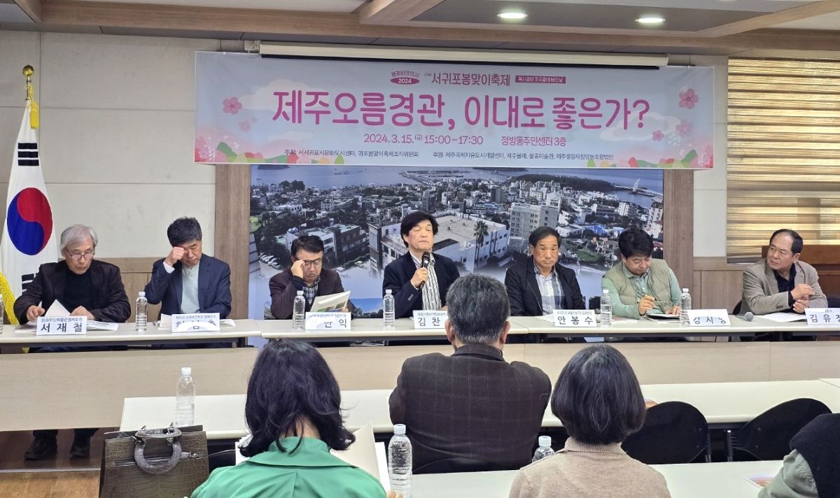 지난 15일 정방동주민센터에서 ‘제주오름경관, 이대로 좋은가?’라는 주제로 시민포럼이 열렸다.
