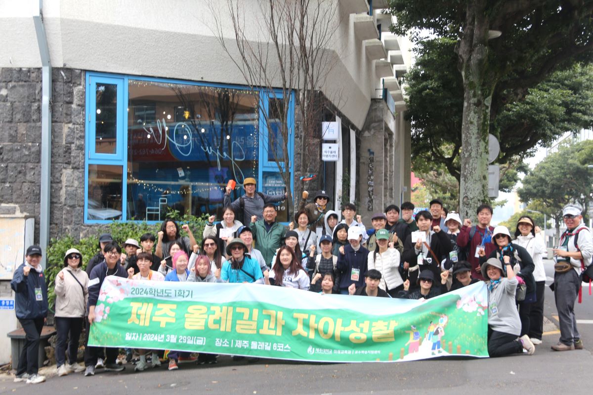 2024학년도 1학기 ‘제주올레길과 자아성찰’은 교육혁신처 미래교육과와 교수학습지원센터가 주관하며, 지난달 22일 오리엔테이션을 시작으로 트레킹 및 인터뷰, 제주올레길을 통한 대학생활 및 진로 계획 발표를 주제로 수업을 운영한다.