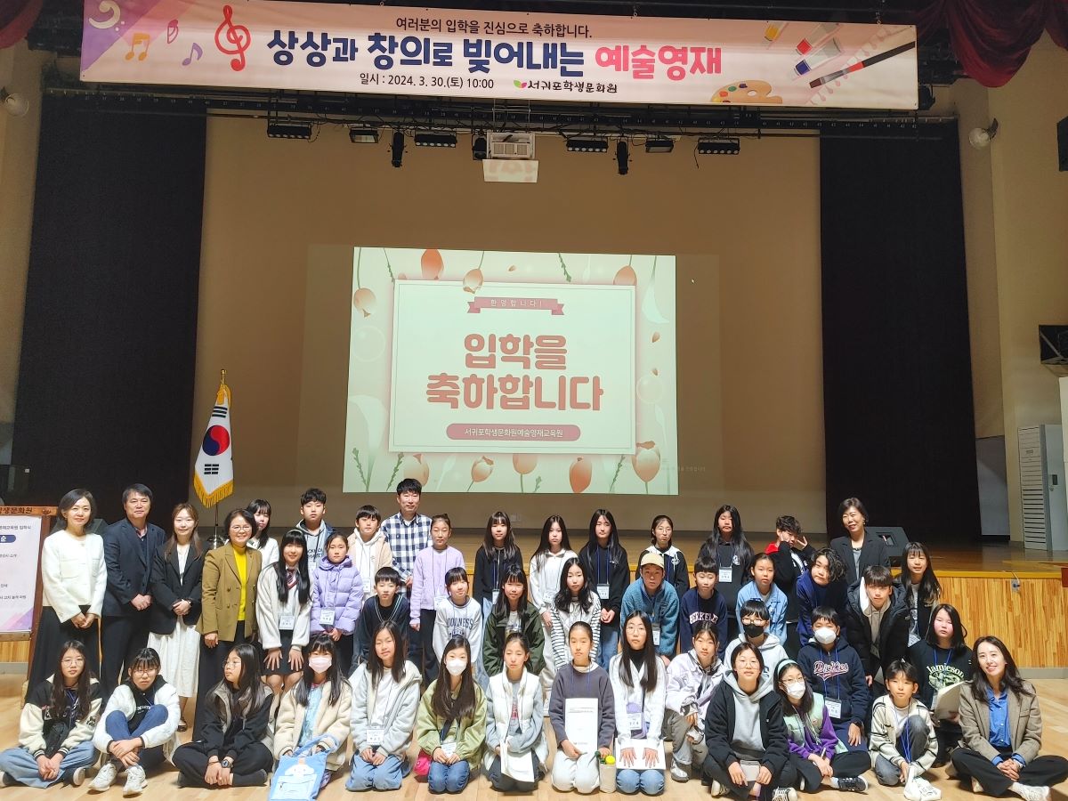서귀포학생문화원(원장 강옥화)은 지난달 30일 서귀포학생문화원 대강당에서 예술영재교육원 영재교육대상자 39명 학생과 학부모가 참석한 가운데 제13회 예술영재교육원 입학식 및 신입생 오리엔테이션을 실시했다고 밝혔다.