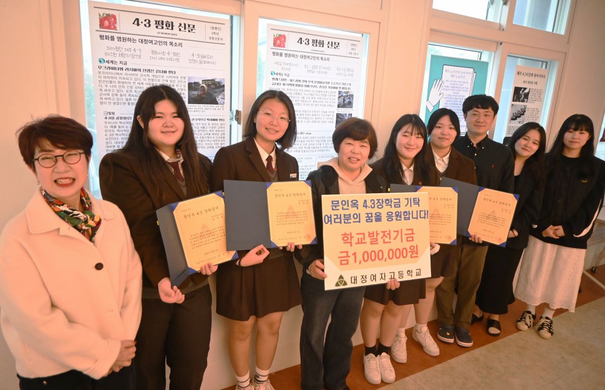 장학금은 4·3 생존희생자로 역사의 산증인 대정 출신 문인옥 여사와 가족들이 대정여고 학생들의 꿈을 응원하고자 마련한 것이다.
