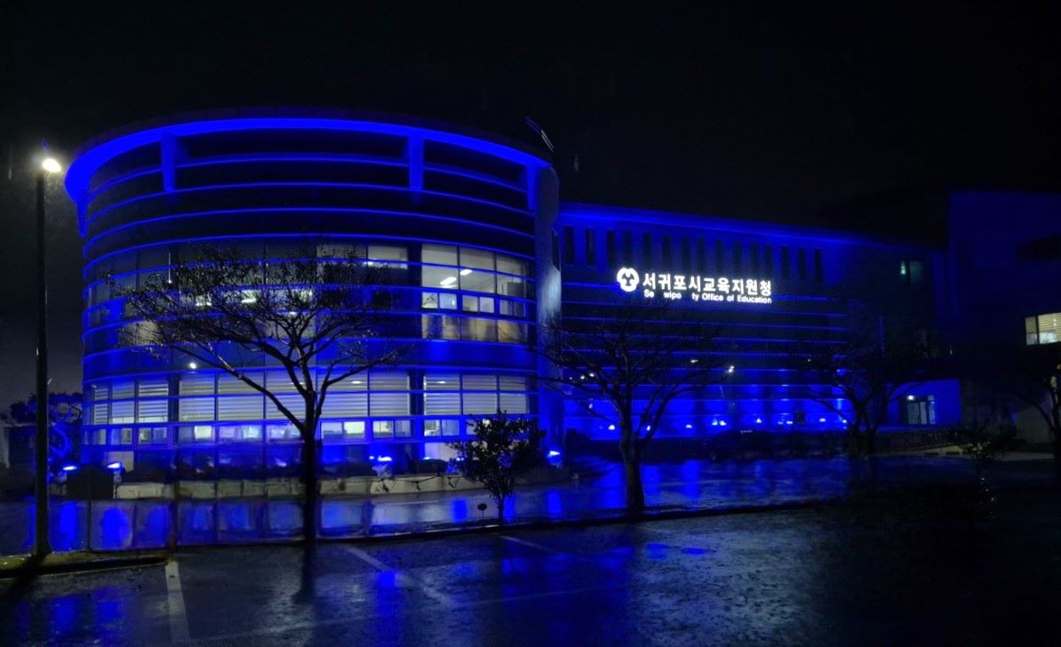 서귀포시교육지원청은 제17회 세계자폐인의 날 기념 블루라이트 캠페인에 동참하고 있다고 밝혔다.