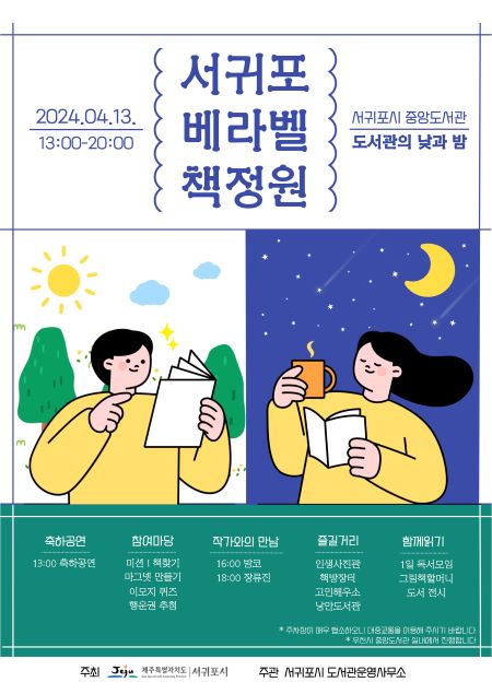 서귀포시도서관운영사무소는 오는 13일 오후 1시부터 8시까지 중앙도서관 일원에서‘2024서귀포베라벨책정원’을 개최한다.