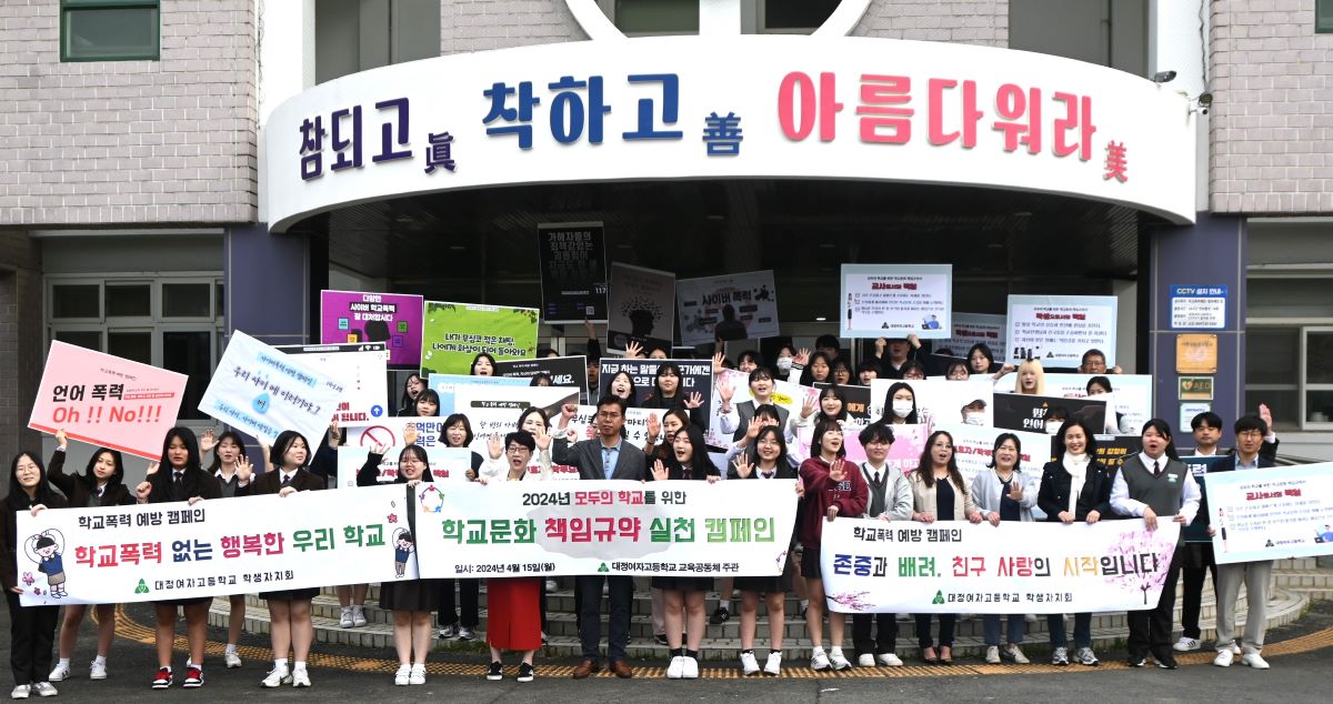 대정여자고등학교 학생자치회는 이번 캠페인에 앞서 학급별로 학교 폭력 예방 포스터 만들기 활동을 통해 학교폭력 관련 공감대를 형성하는 시간을 가졌다.