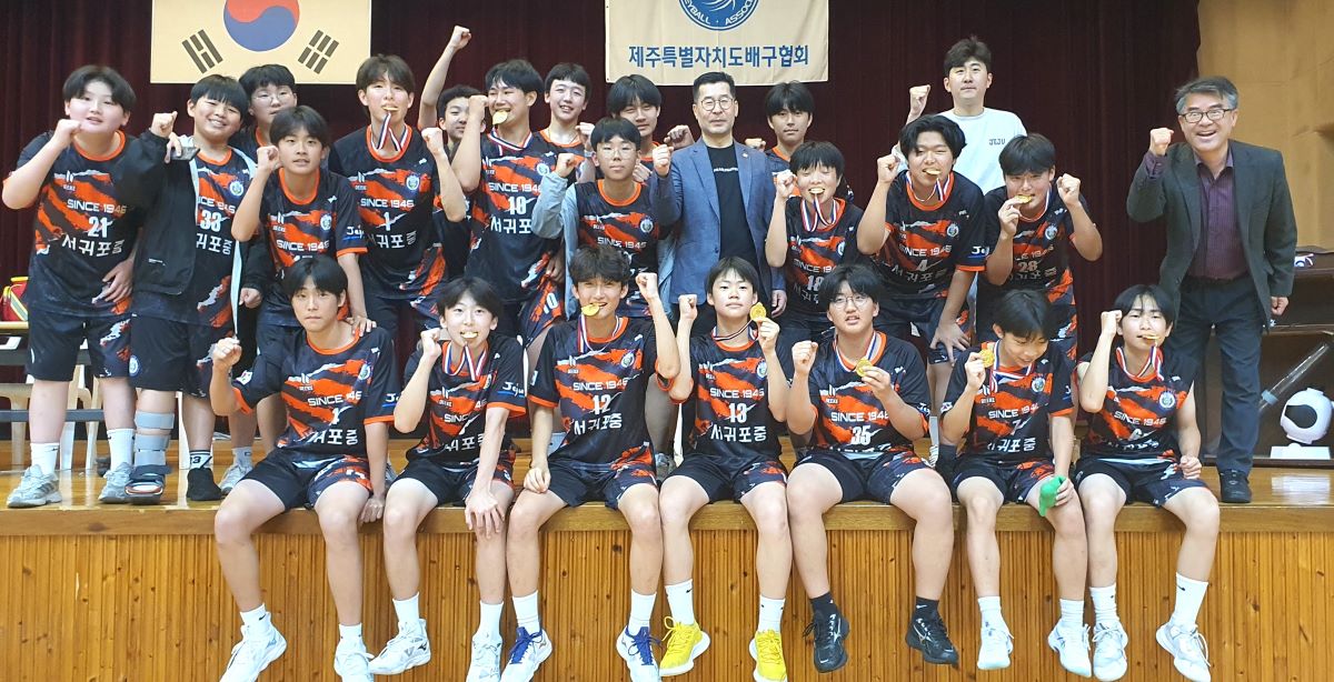 서귀포중은 지난 20일 대정문화체육센터에서 열린 배구경기에서 제주중과의 결승전에서 2대0으로 우승의 쾌거를 이루었다.