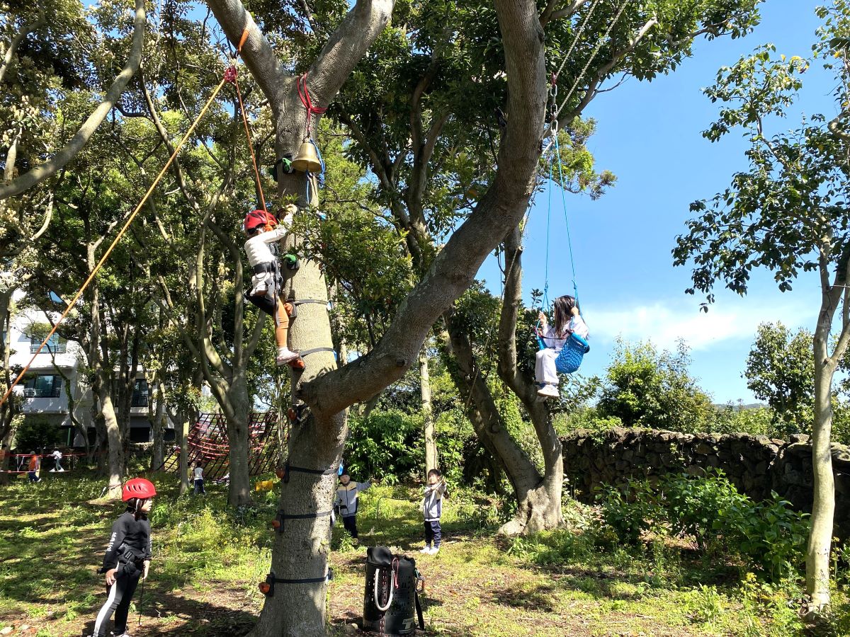 유치원 방과후 과정 및 유-초이음과 연계된 이번 교육활동에는 밧줄 흔들다리, 나무 그네, 짚라인, 해먹, 웨빙그물, 몽키 클라이밍 등 나무와 밧줄을 이용한 다양한 체험을 제공했다.