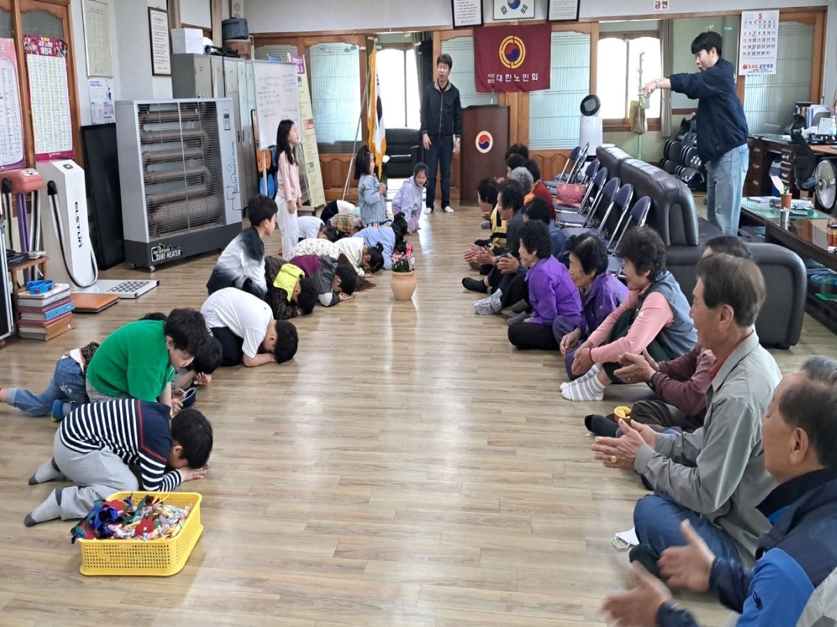 마을 어르신들은 한알 한알 꿰어서 만든 사탕 목걸이, 카네이션에 써 내려간 삐뚤빼뚤 감사 글귀를 보며 눈시울을 붉히시고 연신 “고맙다”며 아이들의 머리를 쓰다듬어 주셨다.