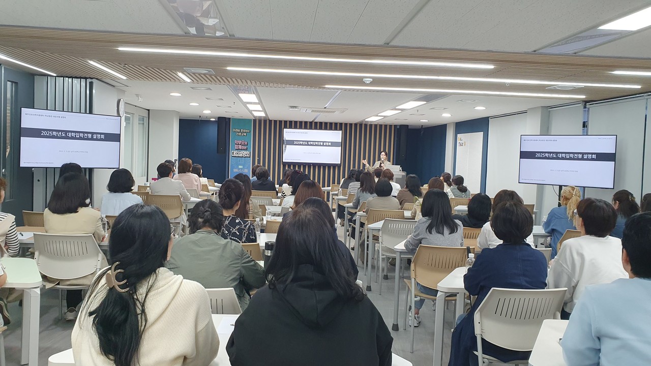 이번 설명회를 진행한 제주특별자치도교육청 김보미 대입지원관은 2025 대입에 대해 전형유형별 특징과 주요 대학의 전형분석을 중심으로 진학정보를 제공함으로써 학부모가 학생과 함께 대입지원 전략을 수립하는데 도움을 주었다.