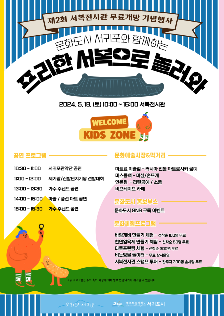 이번 행사는 5월 가정의 달을 맞아 서복전시관 무료 개방 1주년과 3년 연속 최우수 문화도시 선정을 기념해 문화도시 사업과 연계해 진행된다.