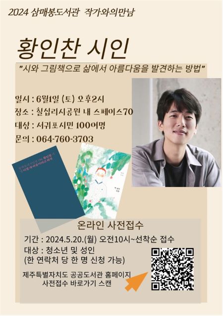 북토크 사전신청은 20일 오전 10시부터 제주특별자치도 공공도서관 홈페이지(lib.jeju.go.kr)를 통해 선착순으로 진행된다.
