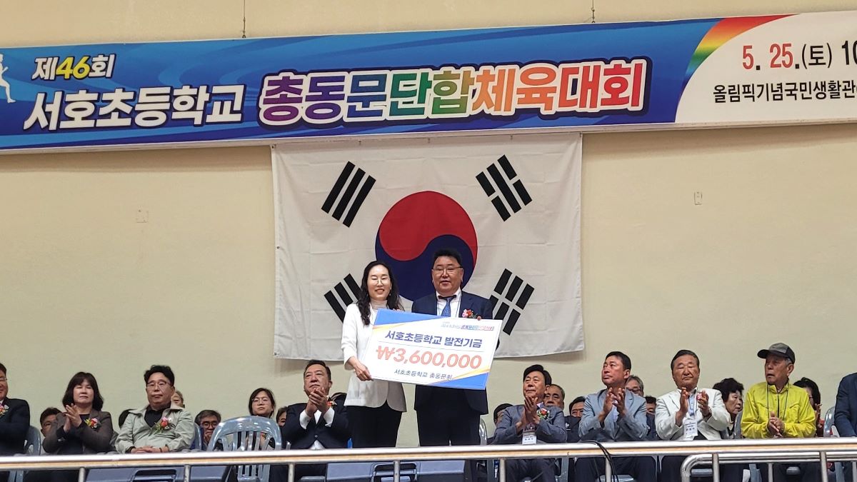 서호초등학교(교장 양정윤)는 지난 25일 올림픽기념국민생활관에서 개최된 제46회 서호초등학교 총동문 단합 체육대회에서 총동문회로부터 학교 발전 기금을 기탁받았다고 밝혔다.