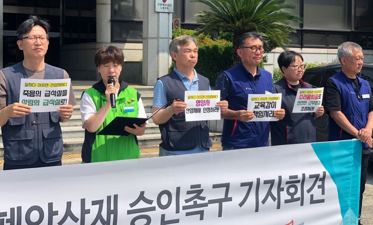 또한, “근로복지공단의 학교 급식실 영양사 노동자에 대한 산업재해 불승인을 규탄하며, 24년 동안 일해온 영양사 노동자의 폐암 산재의 재심사를 통해 승인할 것을 강력하게 촉구한다”고 말했다.