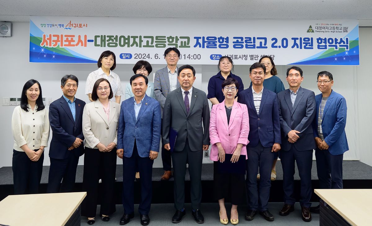 대정여자고등학교(교장 서자양)는 지난 10일 서귀포시청에서 2024년 자율형공립고등학교 2.0 연구학교 신청을 앞두고 서귀포시청과 업무협약을 체결했다고 밝혔다.