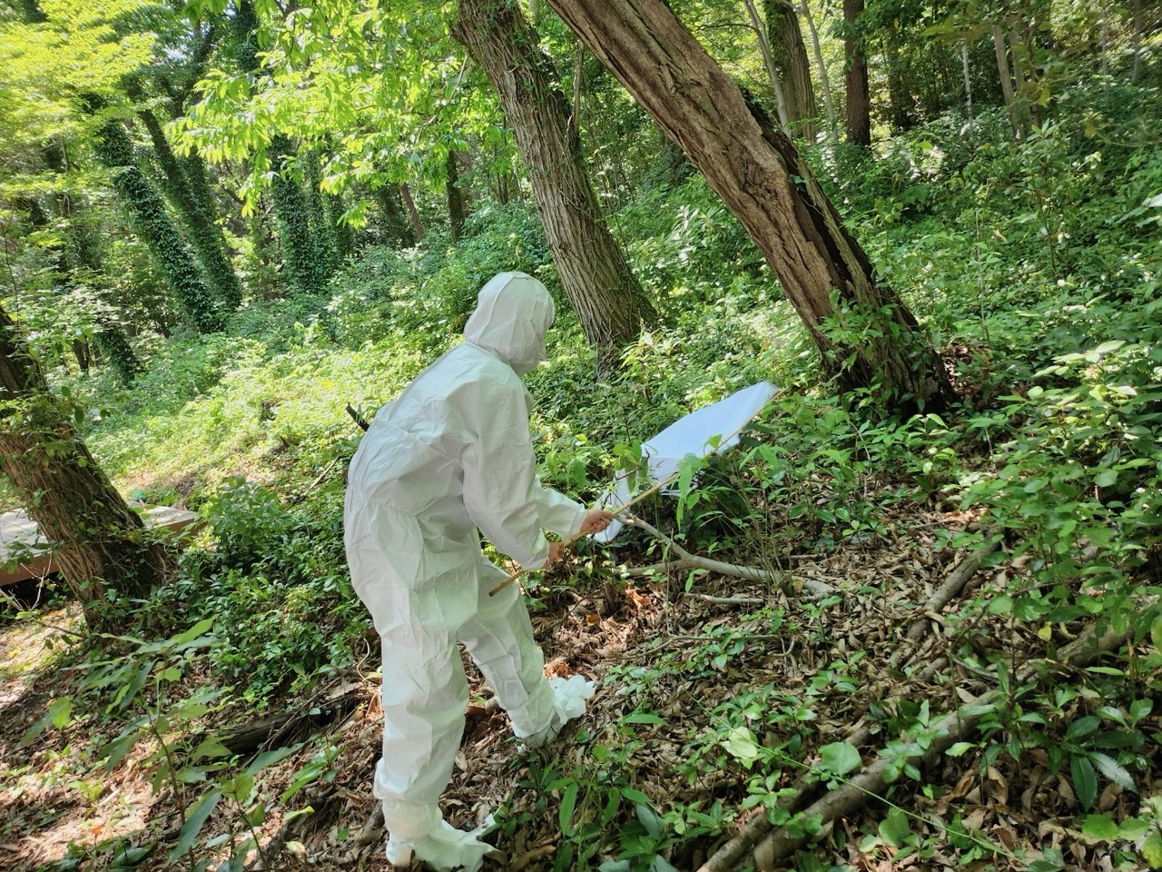 조사는 흰 천 재질의 깃발로 조사 지역의 풀숲을 훑는 플래깅(Flagging) 방식을 이용해 진드기를 채집하는 방식으로 진행된다.