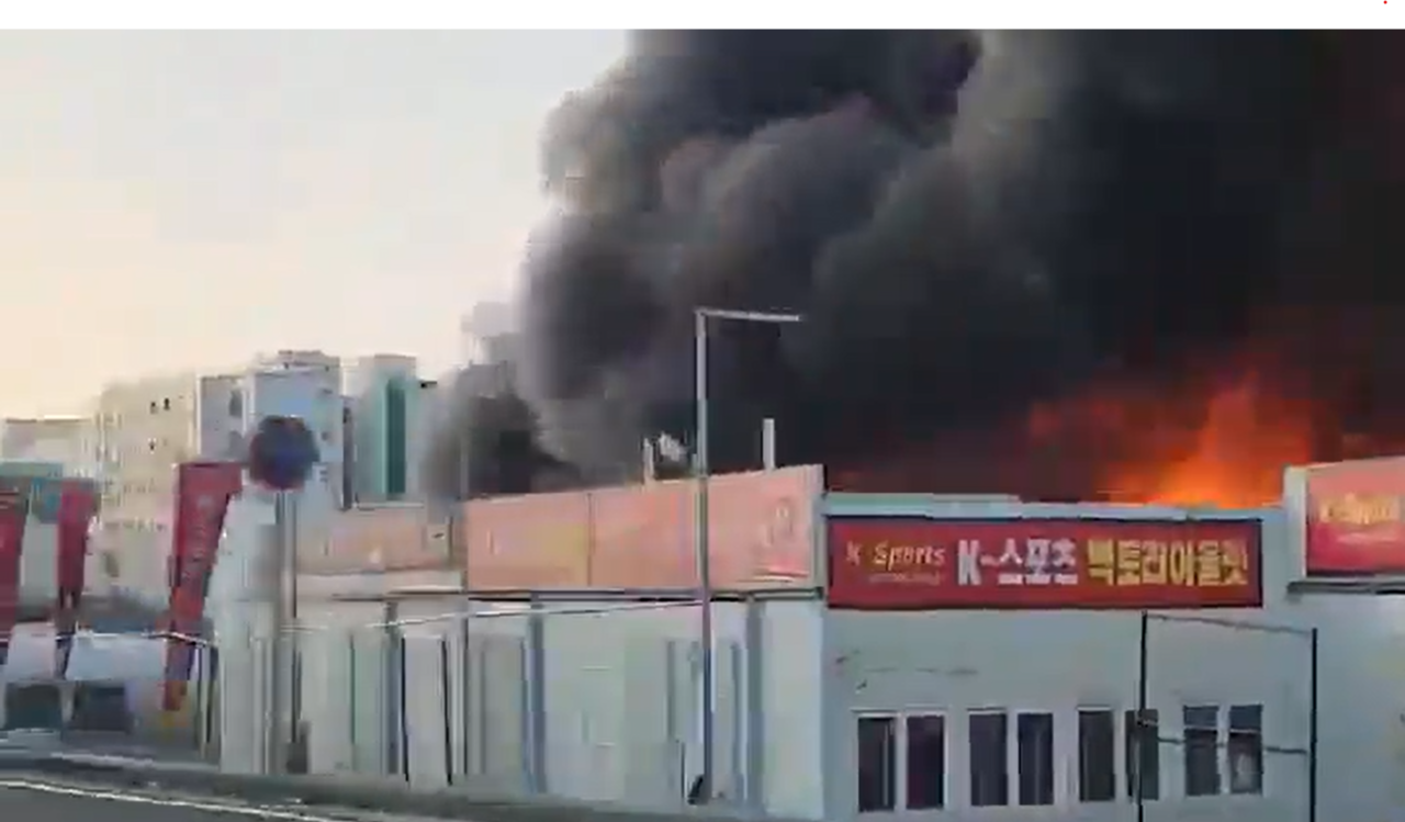 다만 비닐과 샌드위치 패널 등으로 지어진 가건물 안에 의류와 신발 등 가연성물질이 많아 검은 연기가 여전한 상황이다.