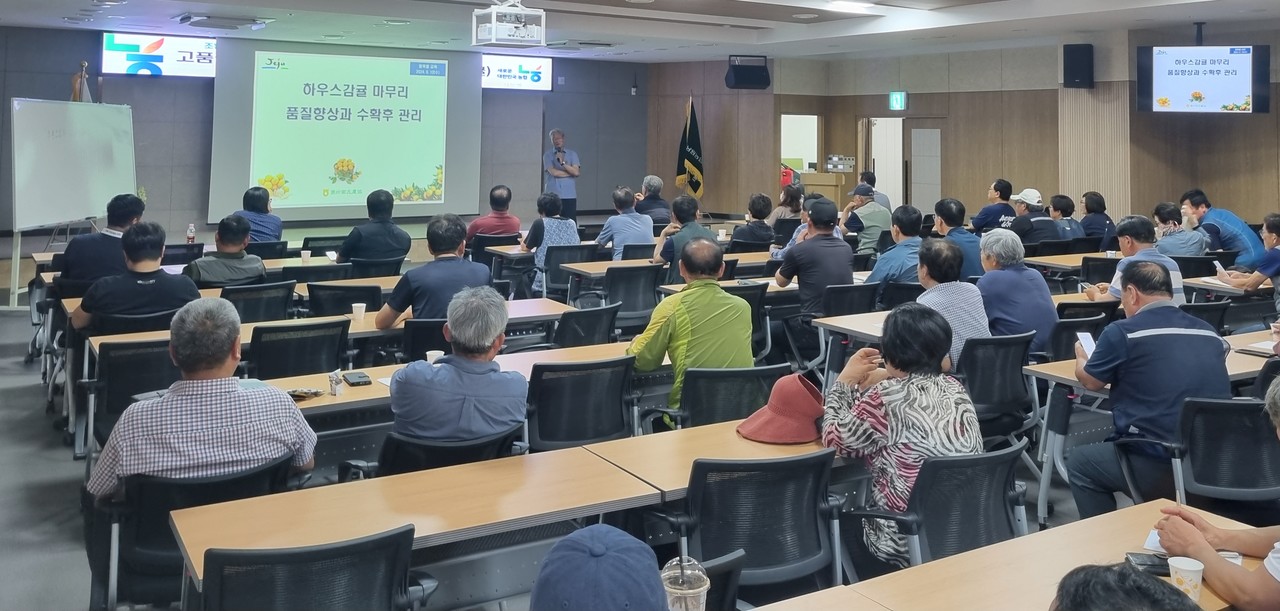 이번 교육은 올해산 하우스감귤의 문제점과 개선방향, 고품질 하우스감귤 생산을 위한 출하전 마무리 착색 및 당산도 관리요령에 관해 교육을 실시했다.