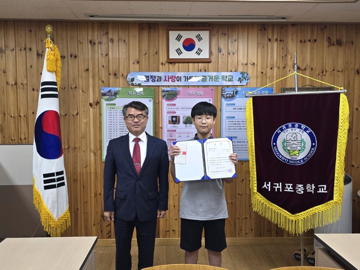 서귀포중학교(교장 고성무)는 지난 4일 제7회 4·3 문예대회에 참가한 1학년 강진형 학생이 우수상을 받았다고 밝혔다.