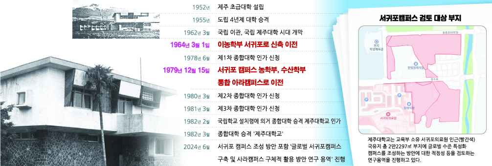 이에 앞서 제주대학교는 1962년 당시 서귀읍 동홍동에 건물 6동에 본관·강의실·실험실·도서관·가축병원·창고·온실 등을 갖춘 서귀포 캠퍼스를 조성했다.