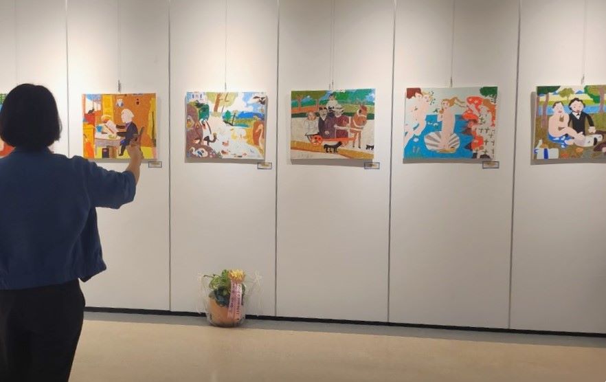 유명 화가들의 명화를 자신만의 상상을 추가해 재해석한 그림으로 아크릴물감이나 아크릴 펜을 이용해 개성 넘치는 그림을 표현했다.