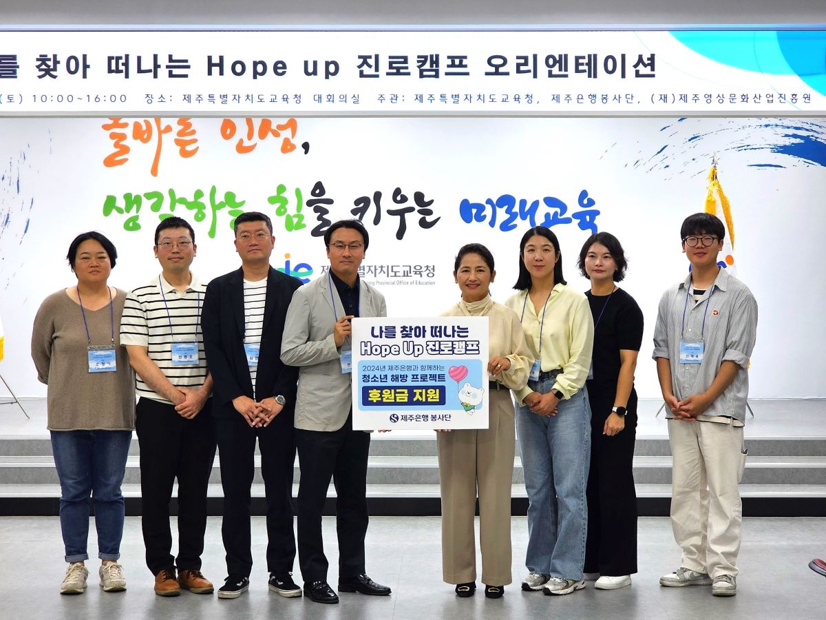 학생 맞춤형 교육복지 협력사업인 ‘나를 찾아 떠나는 호프 업(Hope up) 진로캠프’ 는 도교육청과 제주은행봉사단, 제주영상문화산업진흥원이 민관협업을 통해 교육취약계층 학생들의 학교 적응력과 건전한 성장 발달에 기여하고자 진행하는 사업이다.