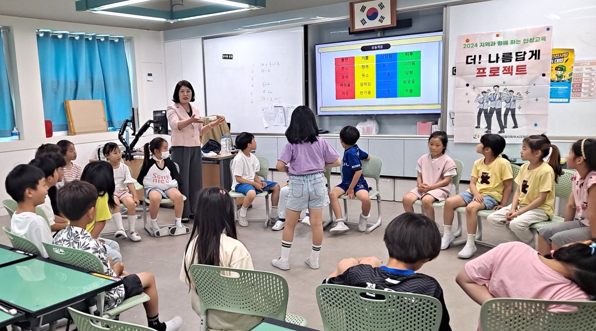 인성 덕목을 알고 실천하기 위한 이번 활동은 제주지역사회교육협의회 지원을 받아 학급당 2차시로 1·6학년은 존중과 배려를 2~5학년은 공감과 소통을 주제로 활동했다.