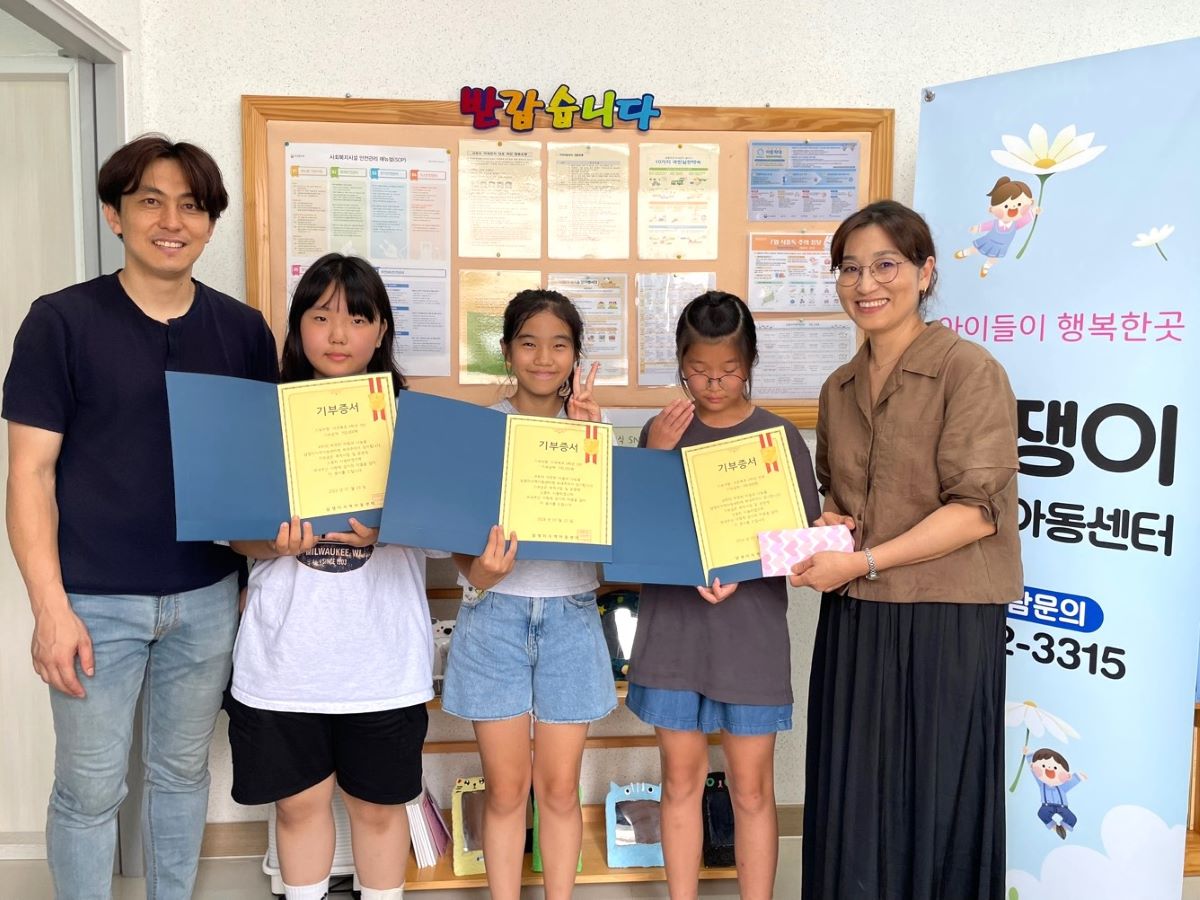 플리마켓 행사로 모인 기부금은 지난 23일 전교어린이회 대표 및 학급 대표 3명과 6학년 선생님이 함께 담쟁이지역아동센터에 기부했다.