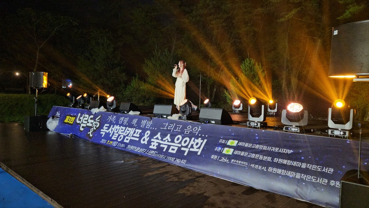 서귀포시 하원애향새마을작은도서관(회강 강종환)은 지난 27일 하원마을 쉼터(너른도)에서 지역주민과 관광객 등이 참석한 가운데 제3회 너른도 愛(애) ‘독서캠프 및 숲속작은음악회’를 진행했다.