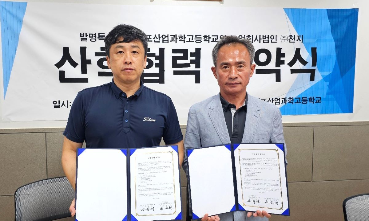 서귀포산업과학고등학교(교장 김수환)는 지난달 30일 농업회사법인(주)천지(대표 송진영)와 업무협약을 체결했다고 밝혔다.