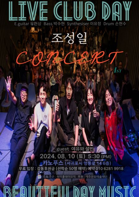 뷰티풀데이뮤직은 2024년 조성일 단독 콘서트 ’서귀포 라이브 클럽 데이‘를 개최한다고 밝혔다.