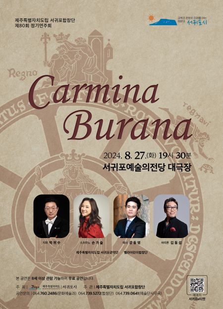 서귀포시는 오는 27일 오후 7시 30분 서귀포예술의전당 대극장에서 제주특별자치도립 서귀포합창단의 제80회 정기연주회 ‘카르미나 부라나’를 개최한다고 밝혔다.