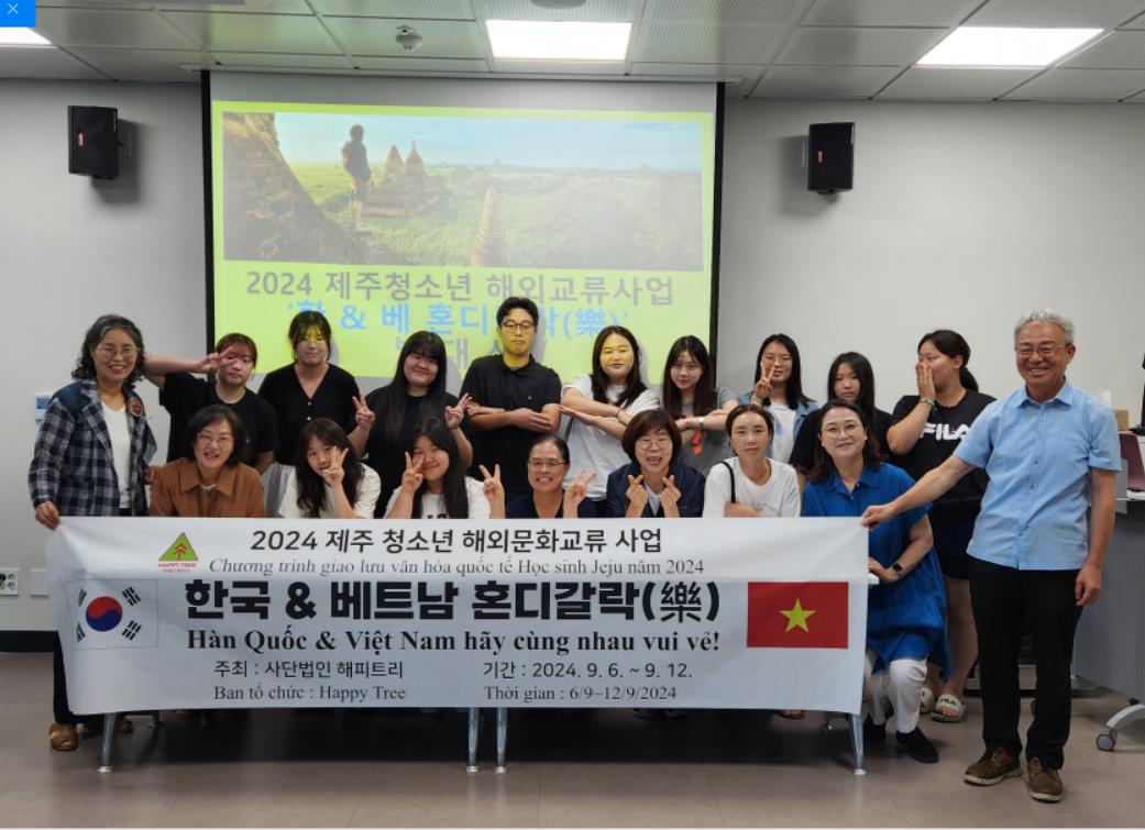 (사)해피트리(이사장 송형록)는 지난 10일 제주 청소년들이 제주문화의 자긍심과 글로벌마인드 향상을 위한 ‘2024 제주청소년 해외문화교류 사업 ’한&베 혼디갈락(樂)”프로그램 발대식을 가졌다.