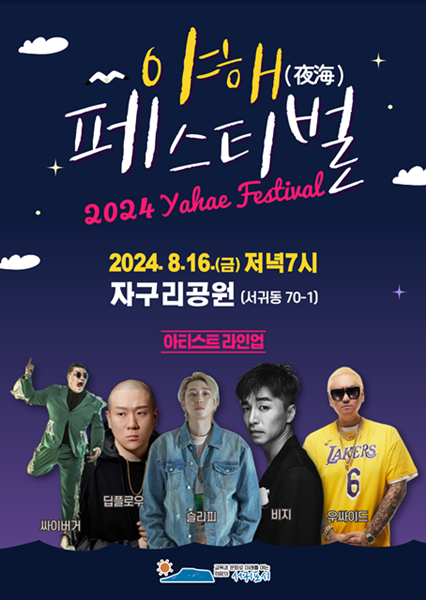 서귀포시는 오는 16일 저녁 7시 서귀포 자구리공원에서‘2024 야해(夜海) 페스티벌’을 개최한다고 전했다.