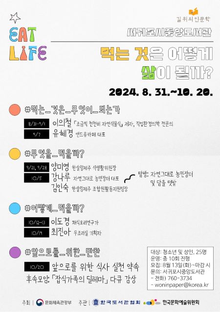 중앙도서관 관계자는 “우리 사회가 재난적 기후 위기를 경험하는 시기에 이번 프로그램을 통해 개개인의 ‘먹기’가 어떤 의미인가를 묻는 말에 답이 될 수 있기를 바란다”며, “이와 같은 문제에 대응하기 위해 공공도서관이 할 수 있는 방식으로 계속해서 고민하고 참여할 계획이다”라고 말했다. 문의 760-3734