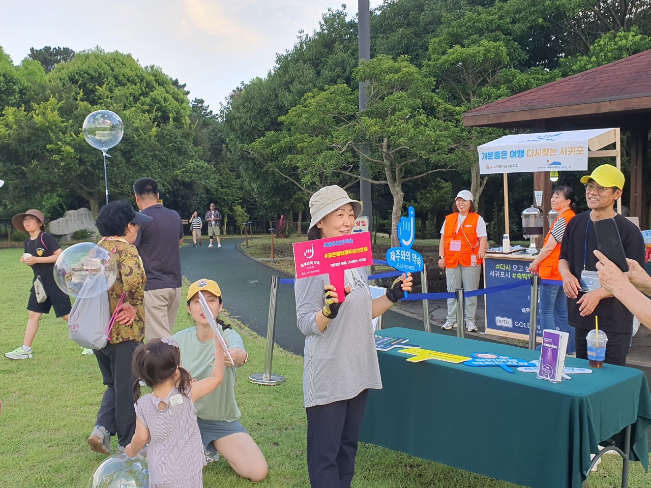 지난 16일 저녁 서귀포 자구리공원에서 열린 ‘2024 야해(夜海) 페스티벌’ 에서는 관광농원 ‘엠유스토리’(대표 양문석)가 행사장을 찾은 관광객에게 ‘제주와의 약속’ sns 이벤트를 진행하며 제주관광 혁신 캠페인을 펼쳤다.