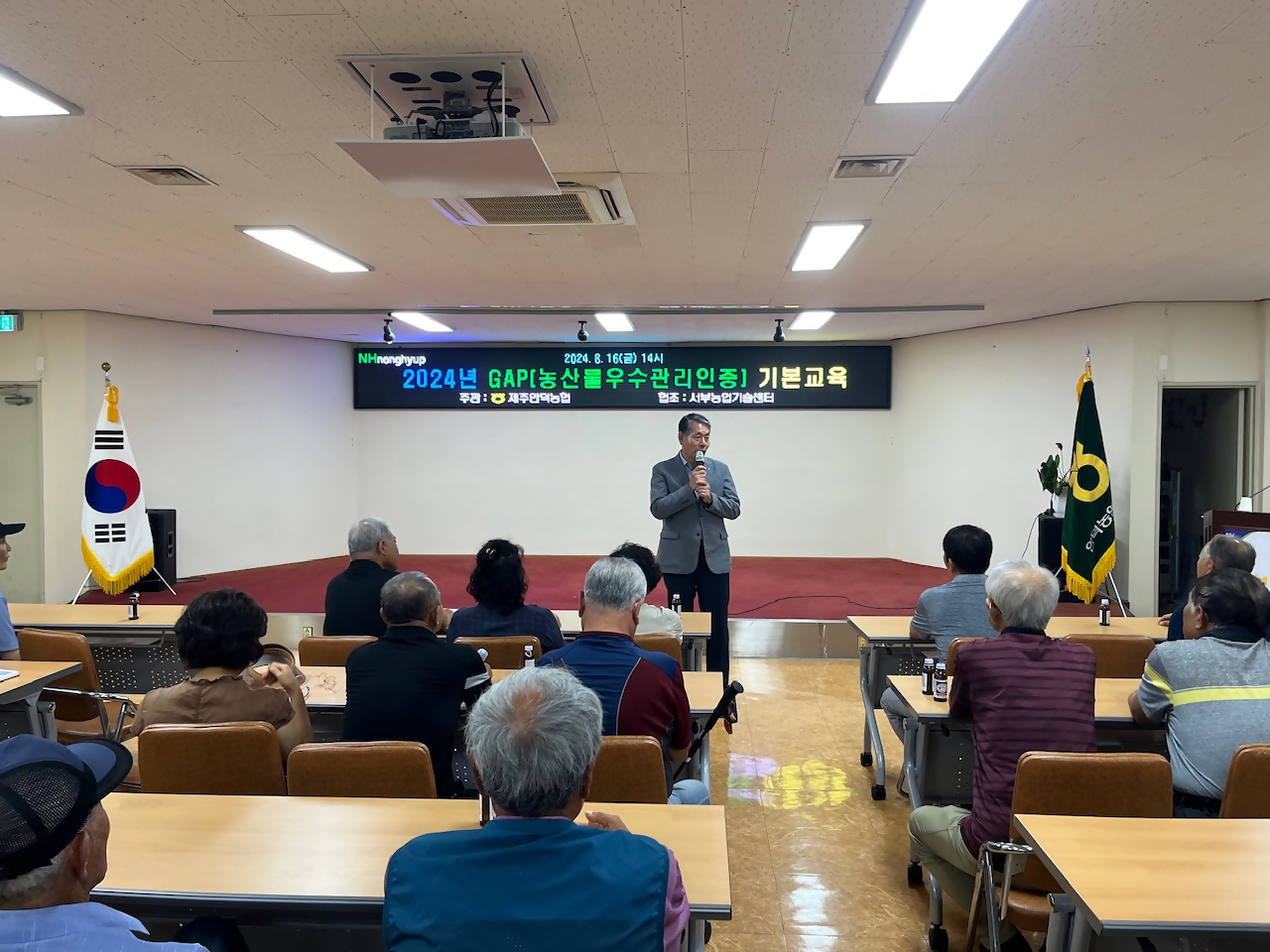 제주안덕농협(조합장 이한열)은 지난 16일 3층 회의실에서 조합원 100여 명을 대상으로 2024년 GAP (농산물우수관리제도)기본교육을 진행했다.