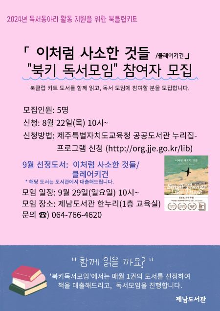 9월 선정 도서는『이처럼 사소한 것들』로 모임 일정은 다음 달 29일 제남도서관 교육실에서 진행한다.