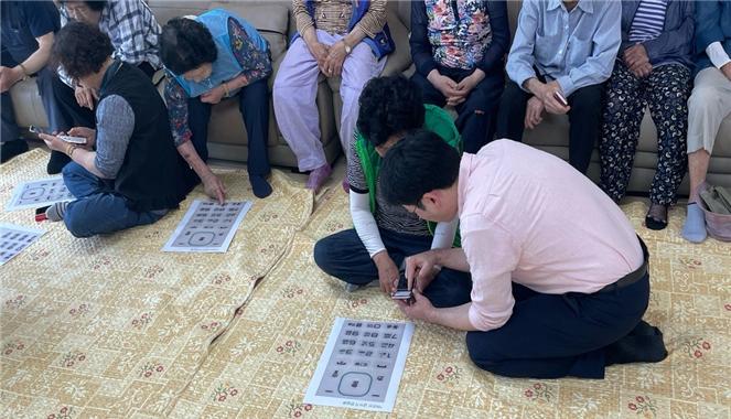 교육은 스마트폰, 앱 활용법뿐만 아니라 스마트폰을 가지고 있지 않은 어르신들을 위한 문자판 연습 등으로 구성되었다.
