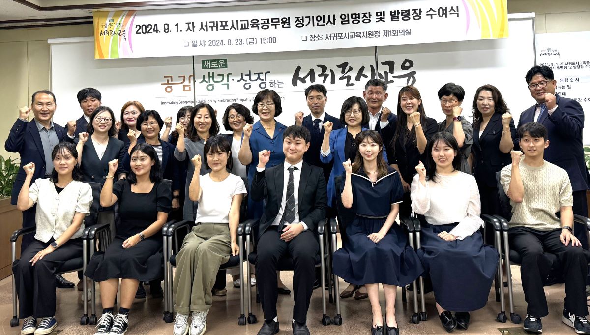서귀포시교육지원청은 지난 23일 서귀포시교육지원청 제1회의실에서 9월 1일 자 교감 승‧전직자, 교육 전문 직원, 신규 교사에게 임명장 및 발령장 수여식을 개최했다고 밝혔다.