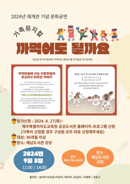 공연과 체험 신청은 제주특별자치도교육청 공공도서관 누리집에서 사전 신청하면 된다.