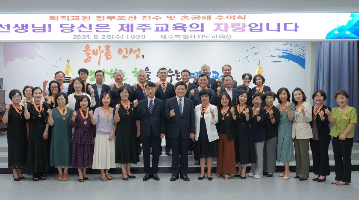 제주특별자치도교육청은 28일 도교육청 본관 4층 대회의실에서 2024년 8월 말 퇴직 교원 정부포상 대상자 107명에 대한 전수 및 송공패 수여식을 개최했다.