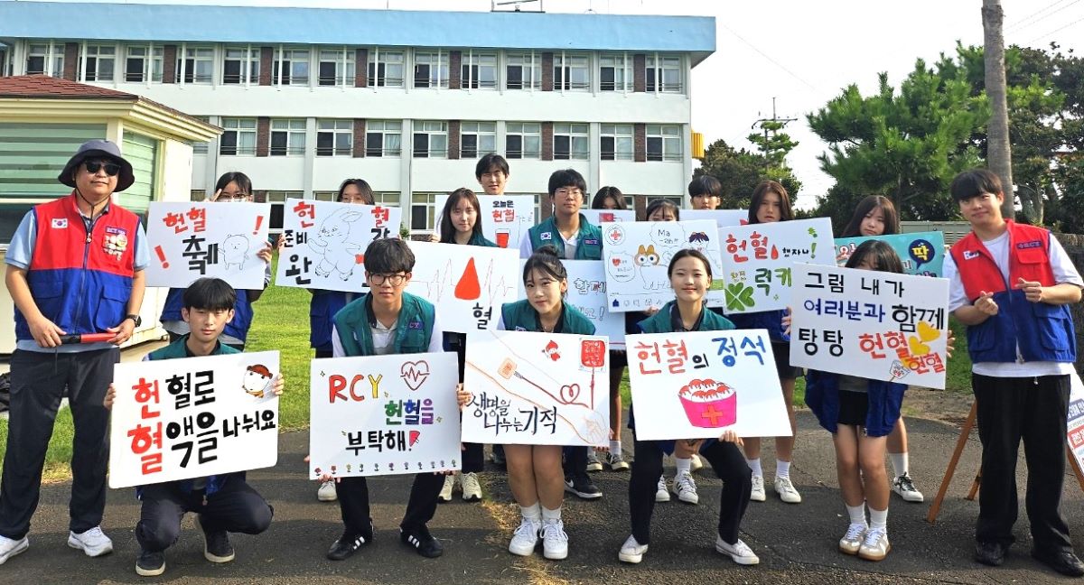 성산고등학교(교장 양기봉)는 지난 27일 아침 등교 시간에 학교 청소년적십자(RCY) 단원 19명과 지도교사 2명이 참가해 헌혈 캠페인을 실시했다고 밝혔다.
