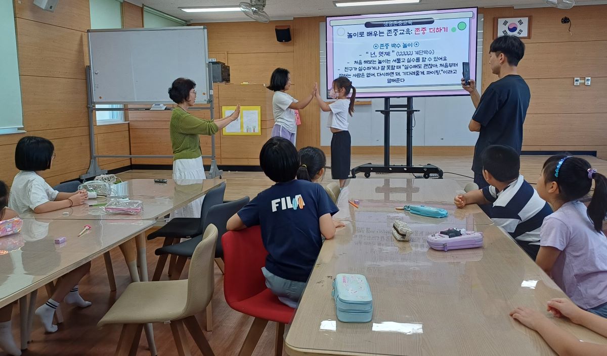 이번 생명 존중 교육은 소중한 너와 나의 보이지 않는 선을 지켜요!를 주제로 1~2학년, 3~4학년, 5~6학년이 모둠별로 수준에 맞추어 동영상을 보고 놀이를 통해 생명 존중의 의미를 배우는 시간을 가졌다.