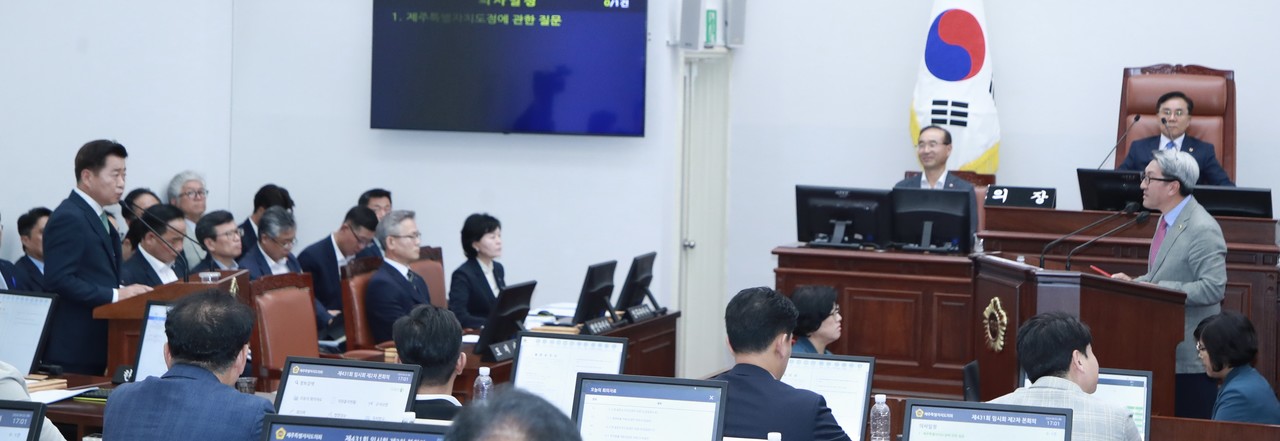 특히 이 의장은 “최고 정책결정권자의 발언과 태도는 제주의 민주주의 수준을 나타내는 척도”라며 “도민의 뜻을 논하는 데 있어서 찬반은 있을 수 있으나 옳고 그름은 있을 수 없고 도민께 품격 있는 정치를 보여드려야 한다”라고 일침을 가했다.