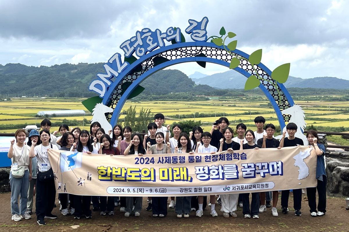 서귀포시교육지원청은 지난 5일부터 6일까지 강원도 철원 일대에서 서귀포시 관내 중학생, 지도교사, 지원청 업무 관계자 등 31명이 참여해 2024 사제동행 통일 현장 체험학습을 운영하고 있다고 밝혔다.