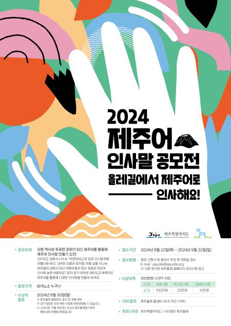 사단법인 제주올레(대표 안은주)와 제주특별자치도는 5일 제주올레 길에서 도보 여행자들이 사용할 수 있는 ‘2024 제주어 인사말 공모전’을 진행한다고 밝혔다.