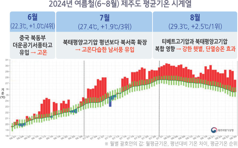 해수면 온도는 23.9도로 최근 10년(2015~2024년) 평균(22.8도)보다 1.1도 높았으며 최근 10년 중 가장 높았다.